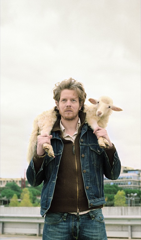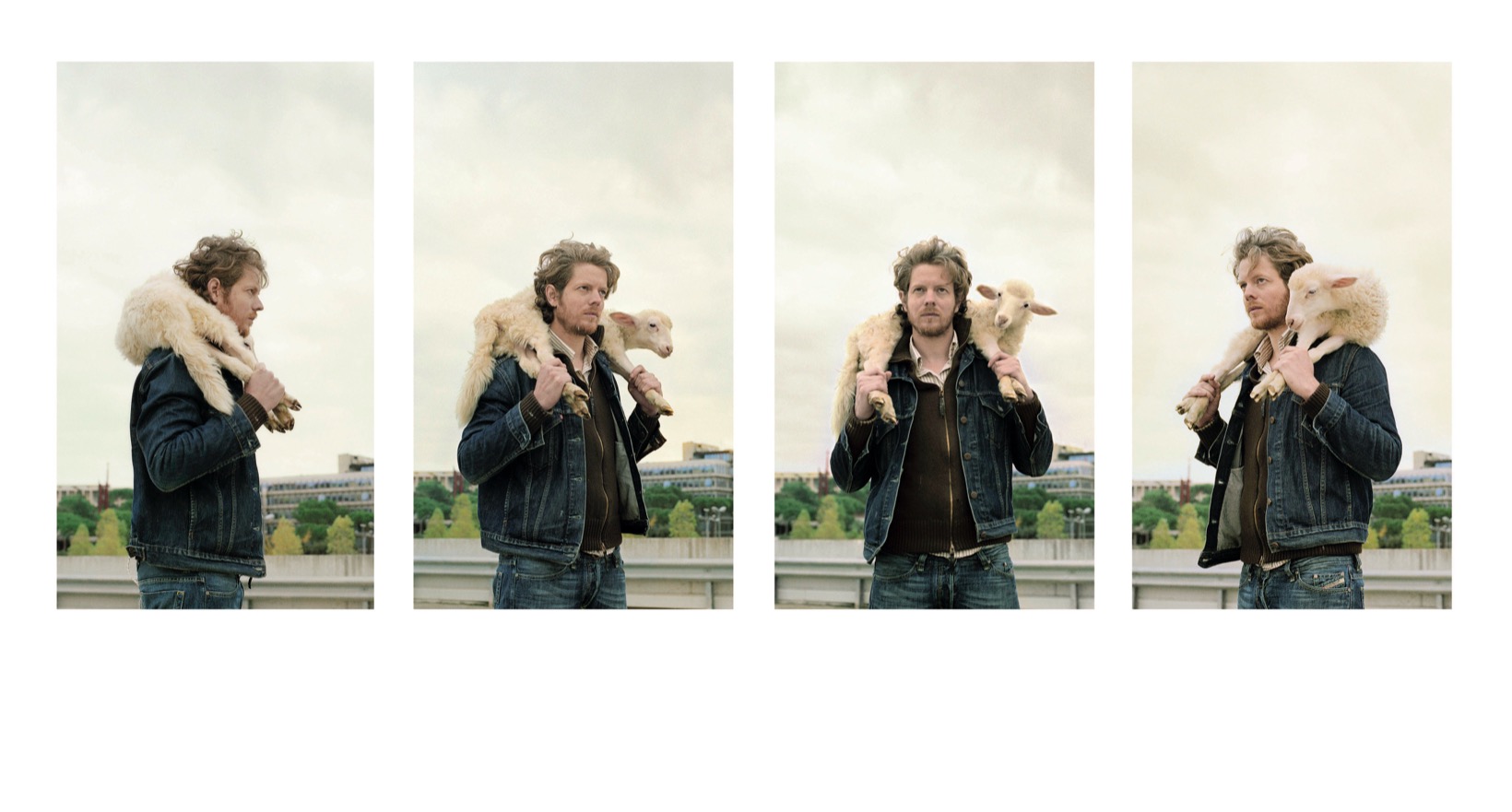 The 4-part double portrait of man and sheep, based on the sculptural art historical representation of the "Good Shepherd",