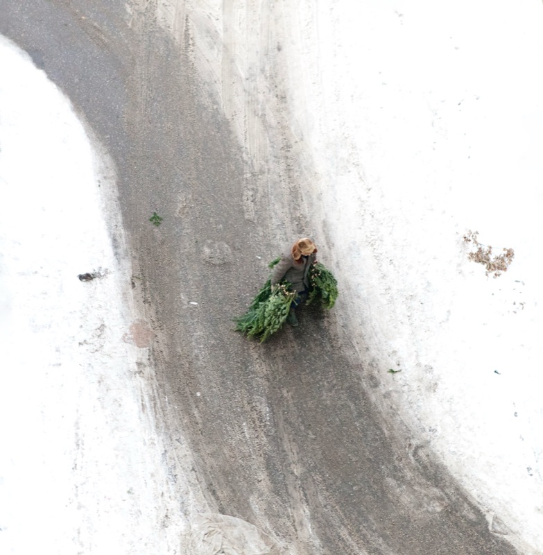 Since my childhood, the view out of this window onto a rapidly changing landscape has accompanied me. The view of the landscape in the snow makes the images seem to fall out of time. The traces of people are lost and the landscape becomes a blank page.