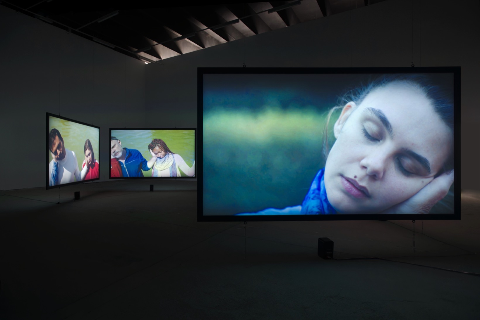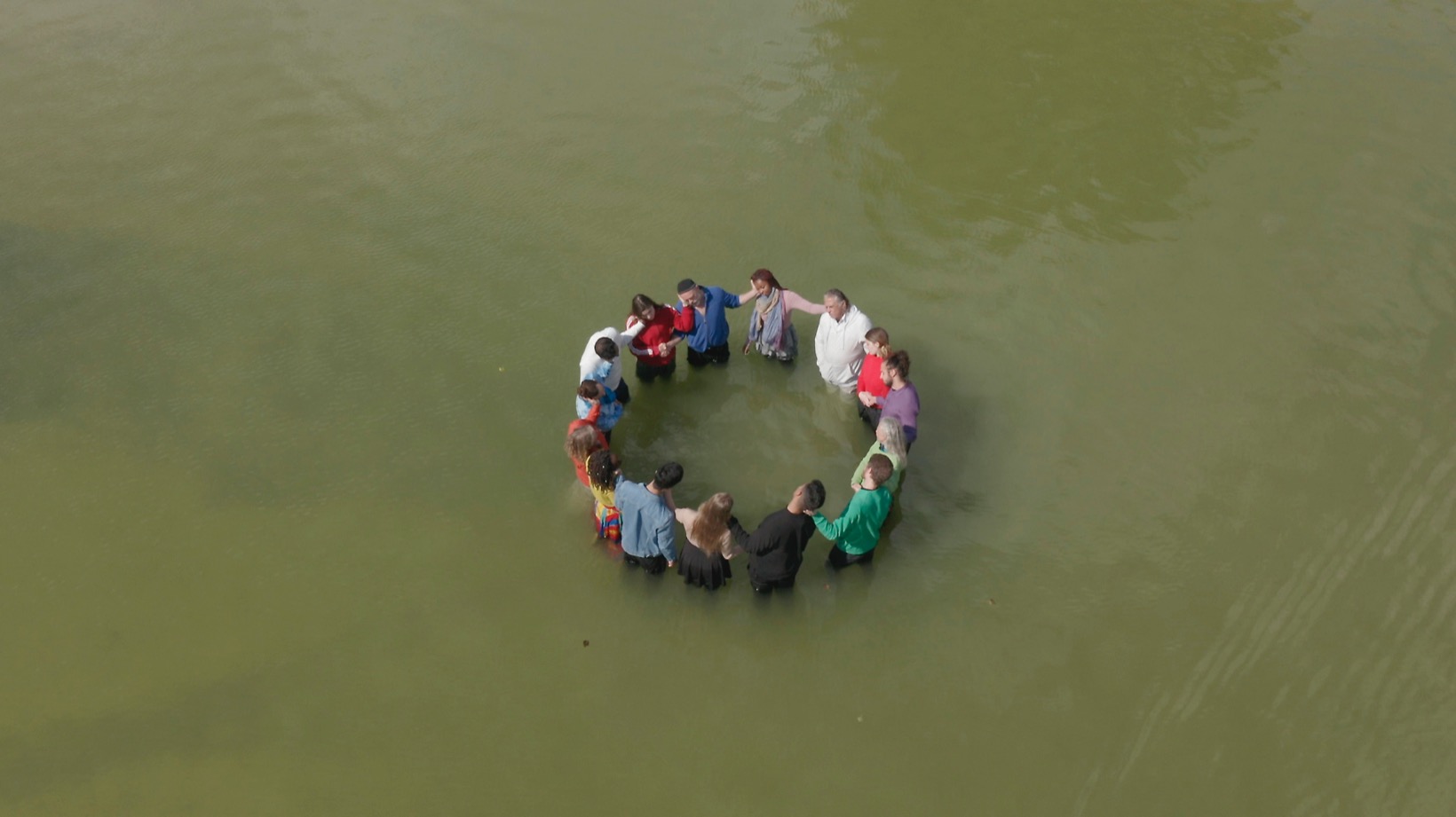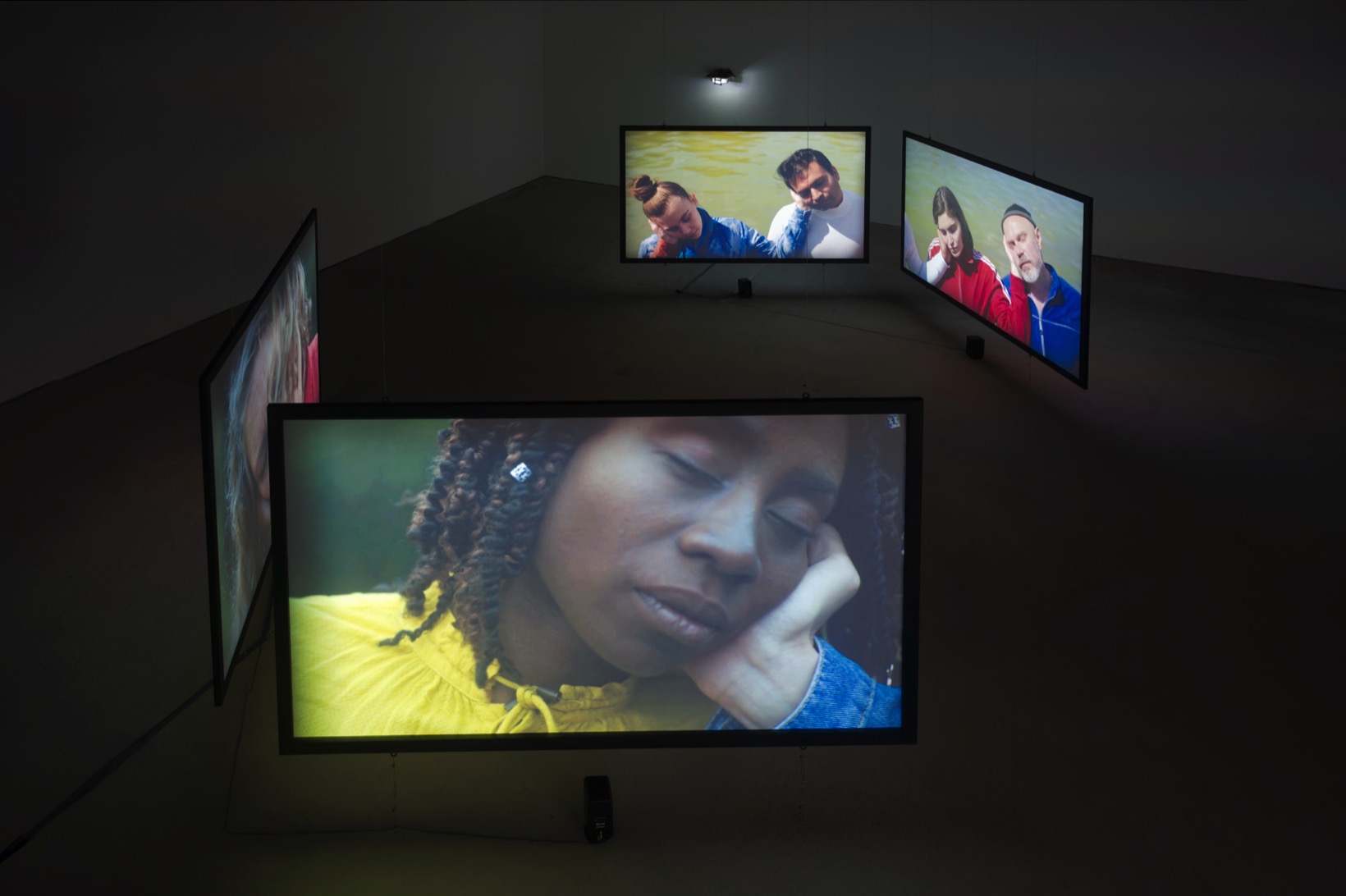 The four-channel installation contains two parts -named “Acts” (Living Monuments I and II) by the artist, developed on the sites of two former public parks that were artificially built in two locations in Hamburg. The parks were built with the help of unemployed citizens at the time, and transposed the desire of the German administration from the beginning of the 20th century, to integrate into large cities places of recreation and closeness to nature by creating 'a public park for all social categories'. One of the sites filmed by the artist was to host a monument that was never completed. In the 1910s when the Altona Volkspark was constrcuted, the large green areas meant to offer relaxation to the masses — a new notion, as public spaces were still rare at the time, continued a series of utopian models set to elevate human life. However, just like many other utopian projects set in contrast with the violent course of history, it came to a hault, and was resumed after World War I. Today, we find ourselves amidst a state of constant ideological, social and geopolitical conflict. Within this context, Mihai weaves the structure of a collective body, awakened in contrast to today’s grim global geopolitics in Europe and beyond. Living Monuments unfolds as a performance caught on camera, in which 15 people, different in origin, skin, colour, gender and age, come together as a single body. Each person holds in their right hand the head of their immediate neighbour, who in turn holds the head of their neighbour until the circle closes. The apparently simple scene repeats itself, growing in intensity while also remaining open to the interpretation of the viewer. Working with a diverse group of performers, many of them first or second generation immigrants in Germany, Mihai reflects on a history in transition, underlying the idea of a social and political balance that depends on the other to be maintained. Imagining another possible future, Living Monumente also problematizes aspects of the transformations exerted on nature, inviting the viewer into the process as a witness and participant. Nature takes on a central role by means of a sound installation, staging “concertos” with plants and non-human life forms.