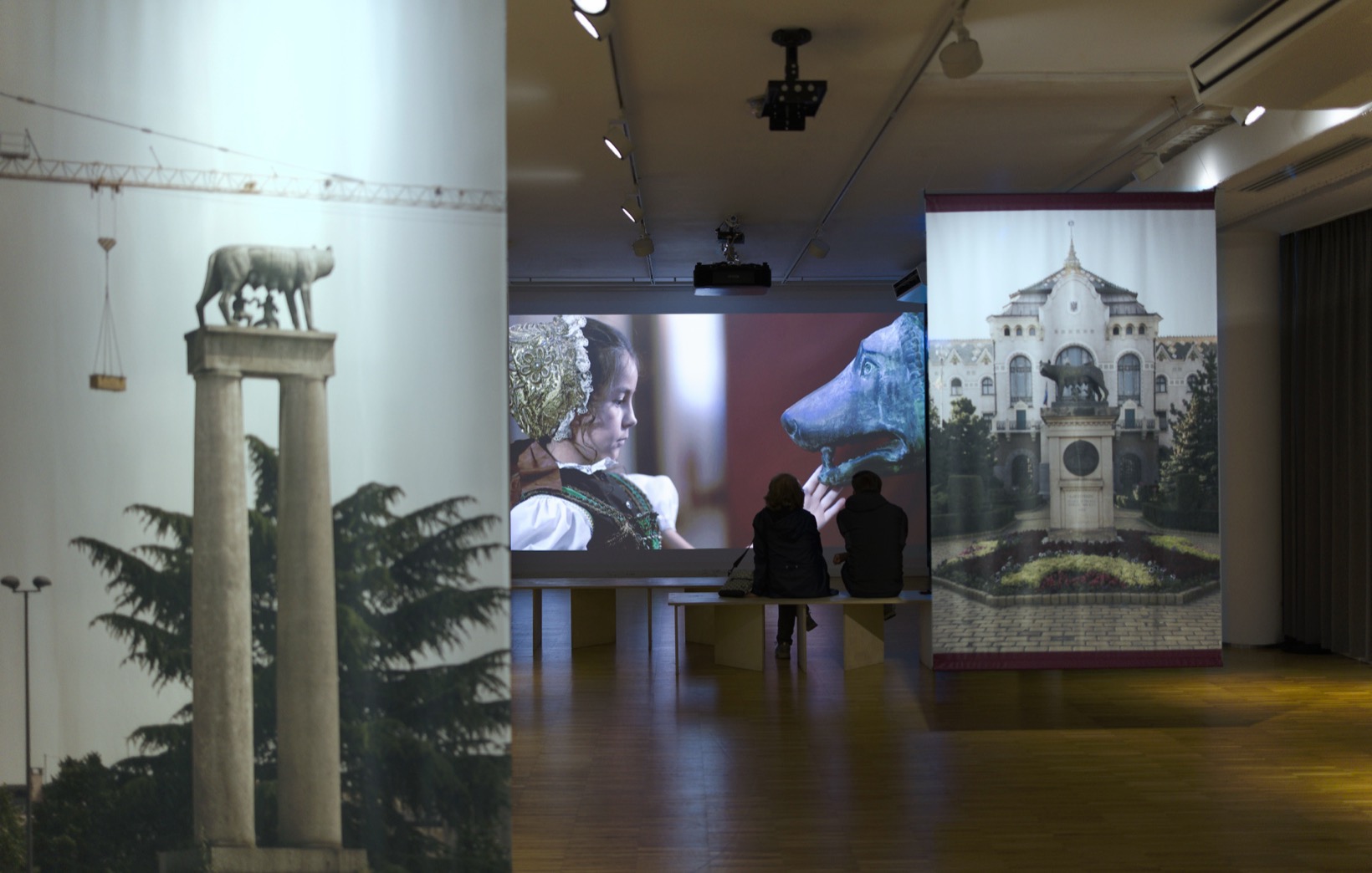 " (...). The meditation on cultural appropriation and the avatars of this mysterious mechanism that ricochet within globally ramifying constructs of identity form the subject of the artist’s most recent film, LUPA. The title refers to the famous Lupa Romana: a sculpture of Romulus and Remus being suckled by a she-wolf, a work that embodies the mythical foundation of Rome and, implicitly, Latinity. Drawing on painstaking historical and anthropological research, Aurelia Mihai traces the incredible spread of this symbol, the reproduction and erection of versions of it in various corners of the world, and also the types of significations attached to it in the contexts within which it is inserted. The film unfolds on multiple temporal and narrative planes: the historical research combines with a fictional register intended to lend representation to historic episodes that have shaped the development of this iconic symbol of identity: the animal that saves and nurtures the twins Romulus and Remus. The Lupa belongs to everybody and nobody; it is a copy without an original, whose capacity to endure and adapt leads it to embrace sometimes divergent, even contradictory meanings. It can be viewed as a symbol of the independence and emancipation of national states or, on the contrary, as an element of belonging to traditional alliances arising from the spread of fascism.